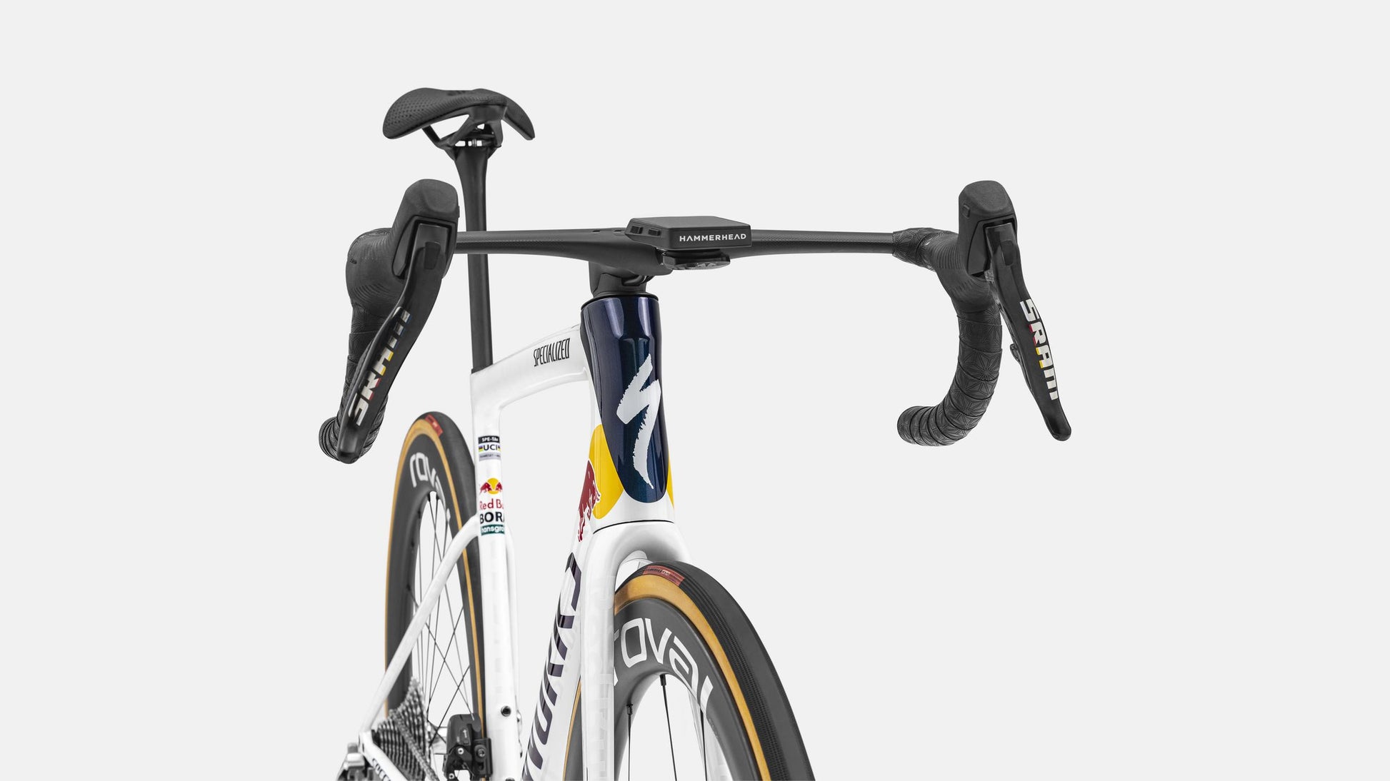 - S-Works Tarmac SL8 LTD: Red-Bull - BORA - hansgrohe Edition is spec’d with only the best components. A full SRAM RED AXS groupset - the lightest electronic group in the world - with a power meter and a Roval Rapide CLX II Team tubeless-ready wheelset is the perfect complement to the world’s fastest frame. A Roval Rapide cockpit to save weight and for the fastest possible leading edge.