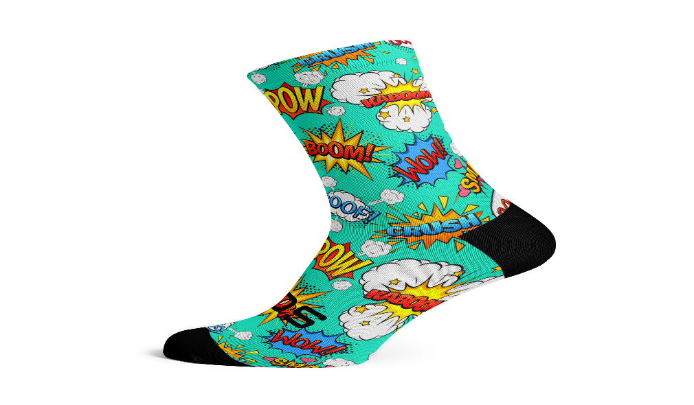 Sox Footwear’s comic socks are made for the everyday hero no need for a cape just these awesome call-outs. Wham! Pow! Kaboom!
